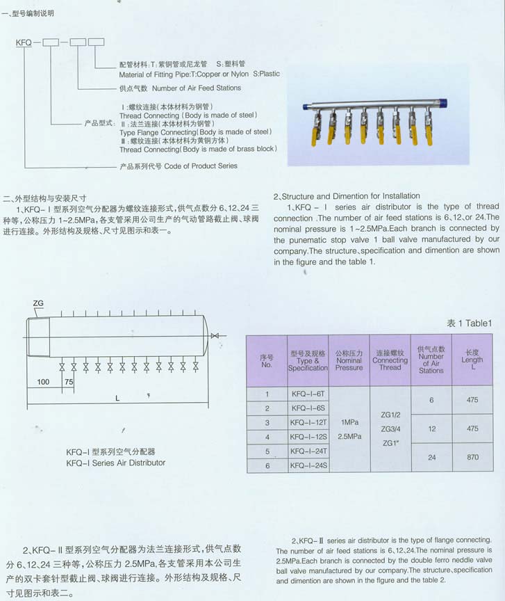 說明:本公(gōng)司生産的KFQ系列(lie)氣源分配器,結(jié)構合理、安裝方(fang)便,它是🔱現場分(fèn)散安裝的氣動(dòng)儀表空氣總管(guan)相連😍接的中間(jiān)橋梁,空氣分配(pèi)器固定安裝在(zai)适當㊙️位置的牆(qiáng)上或柱子上,由(you)管架上的儀🙇🏻表(biao)空氣總管用支(zhi)管将儀表空氣(qi)送到空氣分配(pei)器中,然後通過(guo)空氣分配器各(ge)閥門用ф6或🔅ф8小支(zhī)管将空氣送至(zhì)分配🏃🏻器附近的(de)各用氣儀表中(zhōng)。其中⛹🏻♀️KFQ-Ⅰ型/KFQ-Ⅱ型下端(duān)設有排污閥,可(kě)定期将空氣🙇🏻中(zhong)的冷凝水從中(zhong)排出,以免水分(fen)帶入氣動儀表(biǎo)内影像儀表正(zheng)常工作💯。